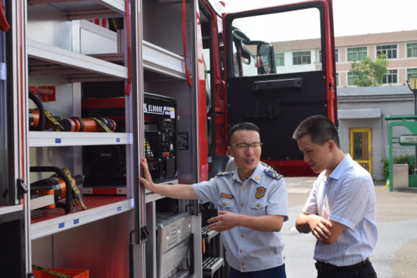 演示結(jié)束后,鎮(zhèn)政府各級(jí)領(lǐng)導(dǎo)及平陽縣大隊(duì)領(lǐng)導(dǎo)來到新購(gòu)的舉升搶險(xiǎn)主戰(zhàn)消防車前,詳 細(xì)參觀、了解消防車輛技術(shù)性能,觀摩了新型消防車輛器材的展示和車輛各種功能操作 演示,并對(duì)我公司研制的新產(chǎn)品進(jìn)行了點(diǎn)評(píng),給予了高度的贊許,稱此款車型最大化的 滿足了老舊小區(qū)、狹窄街道、城鄉(xiāng)低建筑物等滅火救援工作的需要。